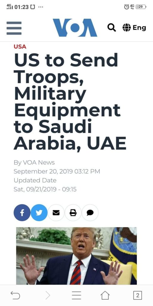 সৌদির তৈলক্ষেত্র আরামকো-তে কে বোমা মেরেছে? তা এখনো পরিস্কার নয়, অথচ আমেরিকার সৈন্য ইতিমধ্যেই আরব ভূখন্ডে চলে এসেছে, কি আশ্চর্য…