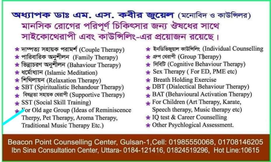 —-আজ ২১শে সেপ্টেম্বর, World Dementia Day—-আসুন জেনে নেয়া যাক আমাদের পরিবারের বয়োজ্যেষ্ঠ সদস্যদের মাঝে যারা এ রোগে ভূগছেন তাদের কি কি সমস্যা হয়ে থাকে– মূখ্য উপসর্গ গুলোর মাঝে স্মৃতিভ্রুম(Forgetfullness) অকারনে বা যুক্তিহীন ক্রোধের বহিঃপ্রকাশ ( Rejection Sensitivity), সন্দেহবাতিকতা(Suspiciousness),অযথাই অপ্রয়োজনীয় জিনিস খোঁজাখুজি করা এবং পেলে তা যক্ষের ধনের ন্যায় লুকিয়ে রাখা(Hoarding Behaviour), ঘুমের সল্পতা বা কখনো অত্যাধিক নিদ্রালু ভাব,ভাবলেশহীন ভাবে তাকিয়ে থাকা(Staring looks), অসংগতিপূর্ণ বাক্যালাপ(Irrelevant Speech), গভীর অতীতের স্মৃতি হাতড়ে বেড়ানো এবং সয়ংক্রিয়ভআবে সেগুলো নিয়ে আলোচনা করতে থাকা অথচ সকালের নাস্তা বা কিছুক্ষন আগের চা খাওয়ার কথা বেমালুম ভুলে যাওয়া ইত্যাদি……. শশব্যস্ত যান্ত্রিক জীবনে প্রতিষ্ঠা লভের চেষ্টা চালিয়ে বিশেষ করে চিকিৎসকদের বলছি, আপনার বাবা মা বার্ধক্য নিয়েবেঁচে থাকলে, কিছু সময় হাতে নিয়ে তাদের সাথে অতীত স্মৃতি রোমন্থন করুন(Reminiscence therapy); তাদের সৃজনশীল কাজে নিয়োজিত রাখুন, গন্ডায় গন্ডায় বিভিন্ন বেলায় নানা ঔষধ(Hypothetical drugs As Cognitive Enhancer) না খাইয়ে,,,, অন্যান্য থেরাপি গুলোর দিকে নজর দিতে পারেন, এতে চিত্তে স্ফুর্তি আসবে ও স্মৃতি শাণিত হবে। Recently Received the expected Invitation from UK to present a paper on “Efficacy of Plant Therapy(Gardening) & Pet(Pigeon/other Birds/Cat/Rabit etc) Therapy among Dementic individuals” কোভিড পরিস্থিতি কমে গেলে সরাসরি বৃটেন যেয়ে উপস্থাপন করা যাবে, কারন এখন বাংলাদেশ Red Zone থেকে Amber Zone এ রয়েছে, আশা করছি আগামী ডিসেম্বরে Green Zone এ চলে আসবে। বৈশ্বীক পরিস্থিতি না পাল্টালে Webinar – এর মাধ্যমেই উপস্থাপন করতে হবে।বিশ্ব “বার্ধক্যজনিত স্মৃতিভ্রুম দিবস” আমাদের মতো উন্নয়নশীল দেশের জন্য খুব গুরুত্বপূর্ণ, আমরা আমাদের প্রবীনদের নিয়ে আরো অধিক দায়িত্বশীল হবো,তাদের মানসিক স্বাস্থ্যের দিকে নজর রাখবো, ‘Old Homes’ নামের প্রবীন নিবাসন আমাদের দেশে যেন প্রধান্য না পায়, সকল সন্তানরা যত্নশীল হয়ে উঠুক নিজ নিজ পিতামাতার প্রতি,সামাজিক ও ধর্মীয় বিশ্বাসের ভিত্তিতে পরিবারের বয়স্ক পিতামাতার যথার্থ মূল্যায়ন হোক– এটাই প্রত্যাশা সকলের নিকট; কিন্তু অনেক সময় এ প্রত্যাশা পূরনে বেশ কিছু প্রতিবন্ধকতা প্রতীয়মান হয়, যা উপসর্গ গুলোতে বর্ণনা করা হয়েছে, সে ক্ষেত্রে একজন সার্বক্ষনিক Care Giver অত্যাবশ্যক। আমার ন্যায় মানসিক রোগ বিশেষজ্ঞগণ মূলতঃ আলঝাইমার্স রোগের সাইকোসিস(অস্বভাবিক আচরণ ও কথার ভারসাম্যহীনতা) ও বিষন্নতার দিকটি দেখে থাকেন। আমি নিউরো-সাইকিয়াট্রি,নিউরোলজি ও নিউরো সাIর্জারী-র সকল পরিচিত কলিগ, বন্ধু, বড়-ছোট ভাইদের আহবান করছি, Alzheimer’s disease সংক্রান্ত তারা তাদের গবেষণা লব্ধ চিন্তা ভাবনা যেন আমার Inbox – এ শেয়ার করেন, যা আমার Mini Reviewed Article টিকে আরো সমৃদ্ধকরতে পারবো; এবং তা নিম্নোক্ত সেমিনারে উপস্থাপন করতে পারবো