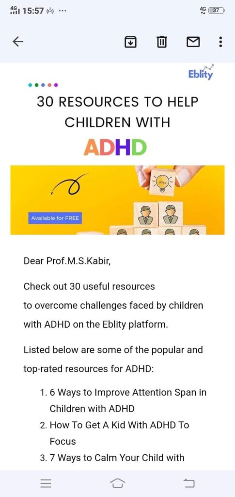 আন্তর্জাতিক শিশু অধিকার প্রতিষ্ঠার সংগঠন Eblity আয়োজিত দু-দিন ব্যাপী ”অমনোযোগী ও অতিচঞ্চলতা” শীর্ষক শিশু মনোরোগের বিষয়ে বিস্তারিত আলোচনা হয়েছে এবং আমাদের
