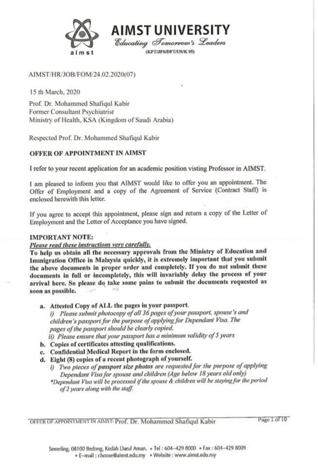 সুতরাং চিন্তা চেতনায় তোমরা ও আমরা একই মনের, আমরা উভয়েই দখলদার ইজরাইলকে ঘৃণা করি, ফিলিস্তিনের বিজয় চাই; তারা আরো এক ধাপ আমাকে বেশী এগিয়ে দিতো যখন শুনতো মধ্যপ্রাচ্যে আমার ফিলিস্তিনী চিকিৎসকদের সাথে কাজ করার অভিজ্ঞতা রয়েছে আর আমি ওদের দেশেও কেদাহ-প্রদেশের AIMST-তে অধ্যাপক হিসেবে নিয়োগ পেয়েছি। বেশ কয়েক বছর আগে সরকারী Recruiting Agency BOESL -এর মাধ্যমে মালদ্বীপের IGMH (Indira Gandhi Memorial Hospital)-এ Senior Consultant psychiatrist হিসেবে মেধাতালিকার অগ্রভাগে থেকে নিয়োগ পেয়েছিলাম, কিন্তু মালয়েশিয়া আর মালদ্বীপের মুসলিমদের চেতনায় বিশাল ফারাক বিদ্যমান, আজ শুধু এ টুকুই বলবো ।