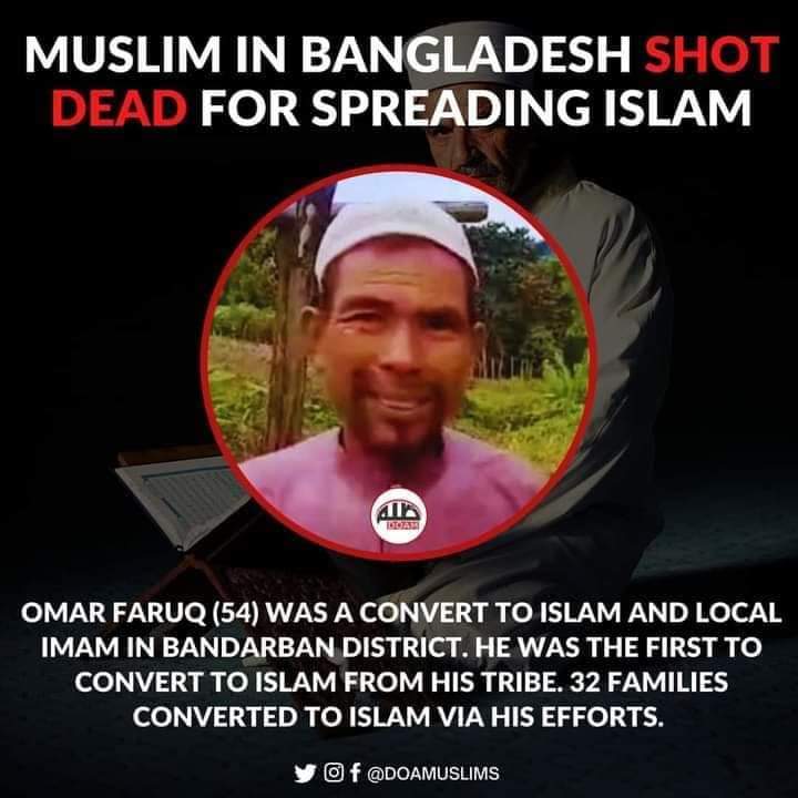 ‘মাইকেল চাকমা’-র নামে ২০২০ এর মাঝামাঝি সময়ে ১১ টি মামলা ছিলো, এর মাঝে ৪ টি হত্যা মামলা, তৎকালীন সোনারগাঁও থানার পুলিশ অফিসারের ভাষ্যমতে সে জন্যি নাকি মাইকেল চাকমা আত্মগোপনে চলে যায়, ঘটনা যা-ই হোক ঠিক তার পরের দিন-ই মূল ধারার ধজাধারী পত্রিকা ওয়ালারা বড় করে প্রথম পাতায় শিরোনামসহ সংবাদ ছাপায়, একজন তথাকথিত শান্তি প্রতিষ্ঠার নামে আমাদের পাহাড়ি এলাকায় যেসব বিচ্ছিন্নতাবাদী সংগঠন ত্রাসের রাজত্ব কায়েম করেছে, তাদের নিয়ে ব্যানার সর্বস্য সংস্থ্যা গুলো প্রেসক্লাবে প্রতিবাদ বিক্ষোভ মিছিল শুরু করে, তাদের দৃষ্টিতে উহা মানবাধিকারের স্পষ্ট লংঘন; আপত্তি নেই, অবশ্যই অপরাধীর ও নাম নিজস্ব আইনি অধিকার রয়েছে, কিন্তু ঐ একই মানুষগুলো আজ আরেক পাহাড়ি ভাই ওমর ফারুকের নৃশংস হত্যার ঘটনায় পর্বতসম নিরবতা পালন করছে, গত জুম্মাবার(১৮ই জুন) বাড়ি হতে ডেকে সশস্ত্র যুবকদের দল বর্বরভাবে প্রকাশ্যে পরিবারের সম্মুখে কুপিয়ে হত্যা করেছে। সে শুধু নিজেই ইসলাম গ্রহন করেননি সেই সাথে আশেপাশের ৩০টির অধিক পরিবারকে নও মুসলিম করে তাদের পুনর্বাসনের ব্যবস্থা করেন। ওমর ফারুকের আগের নাম ছিল বেরণ চন্দ্র ত্রিপুরা। সে মৃত তয়ারাম ত্রিপুরার ছেলে। ত্রিপুরা সম্প্রদায় থেকে কয়েক বছর আগে সে মুসলিম ধর্ম গ্রহণ করে ওই এলাকায় একটি অস্থায়ী মসজিদে ইমামতির দায়িত্ব পালন করতেন।
